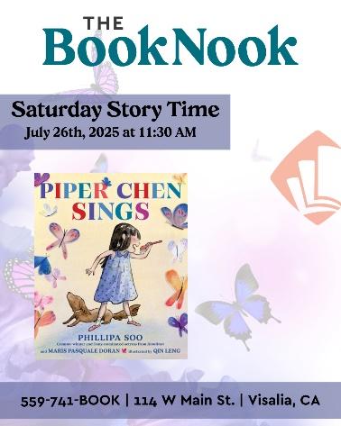 ​Join us this Saturday, July 26th, at 11:30 am for a joyful read-aloud of “Piper Chen Sings,” a heartwarming story about finding your voice and sharing your light. After the story, stay for a fun hands-on activity where kids can create their own beaded butterfly to take home. Perfect for little readers!