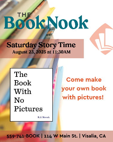 Join us for Saturday Story Time on August 23 at 11:30 a.m. as we read the hilarious hit “The Book With No Pictures.” No pictures? No problem! This book turns grown-ups into silly sound-makers and kids into giggle machines. Come for the laughs, stay for the fun; this Storytime is sure to be a favorite.